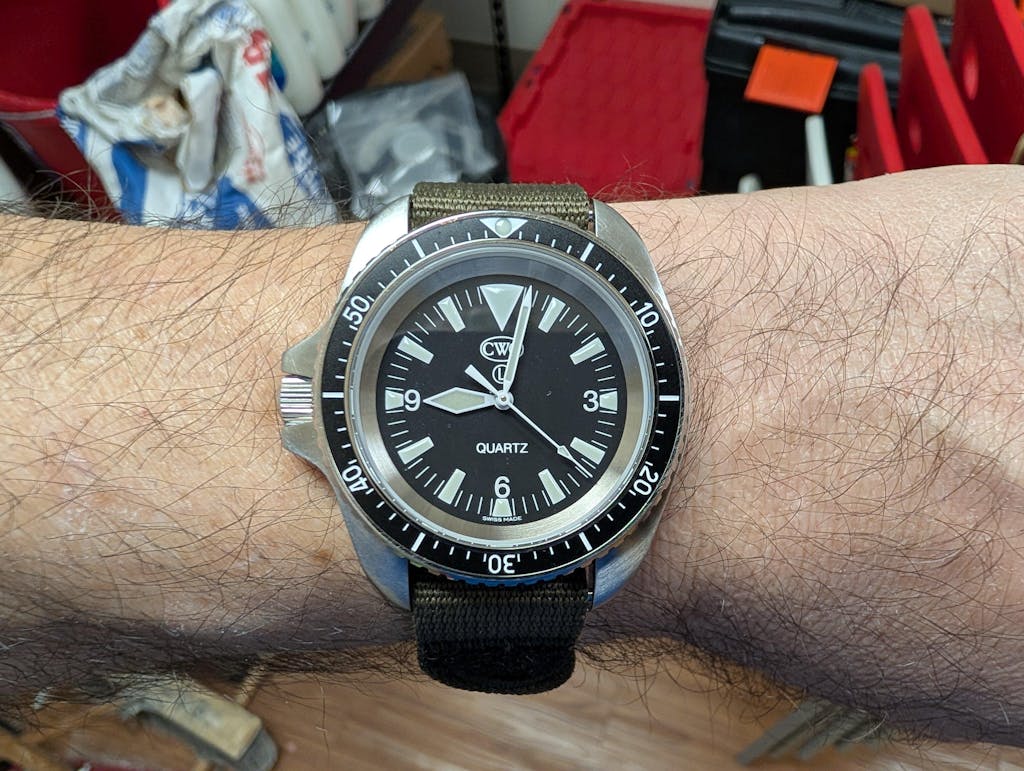 When I started to look at this watch ( and another since) I was quite hesitant on the price point for a quartz watch and so …I hit the google rabbit hole about the brand,its history and also a competitor that was selling similar looking watches for a third of the price. I reached out to CWC and Ollie was a star from the start. He was patient with my questions and sent pictures of the watches I was interested in and even did a QC check on second hand alignment on them to make sure there was no issues due to the quartz model. An emergency services discount was also a lovely gesture and the trigger was pulled!