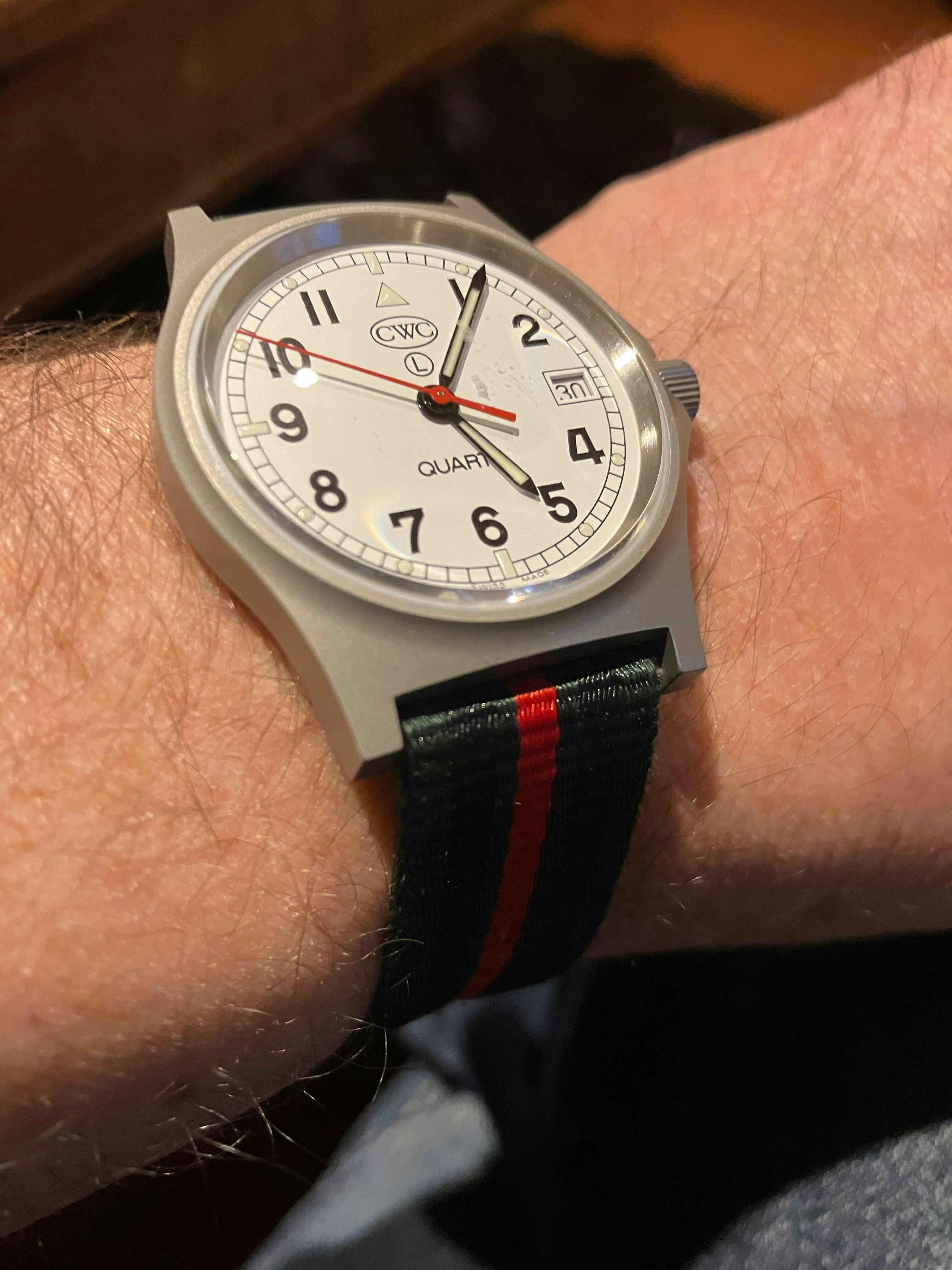 I’m really pleased with my watch. It’s my second CWC and I imagine it won’t be my last. I’ve put the GS on a regimental striped strap and I love it. It’s comfy, rugged and will be able to deal with anything I put it through. CWC make great watches and Silvermans provide all the help you need. Don’t tell my wife, but I’ve now got my eye on one of the automatic Divers!