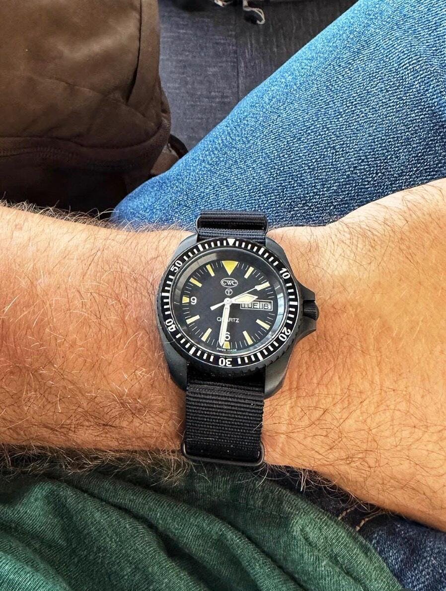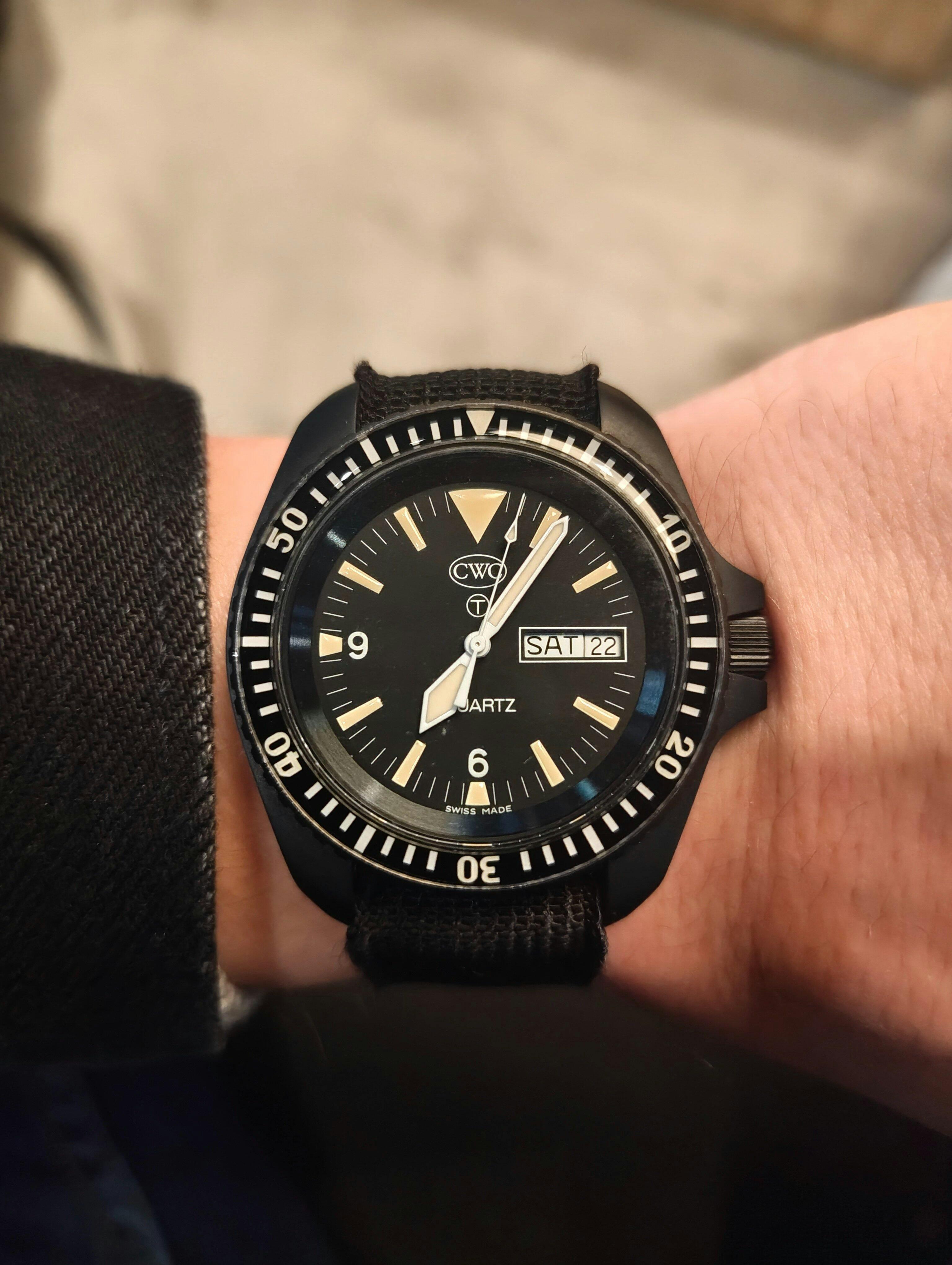 Very happy with this watch, it was a great 40th Birthday present. Received great service from CWC with quick dispatch. Very happy with the quality of the watch, day/date window is great to have, bright luminous markings on watch face a bezel a great everyday wear. Also highly recommend the Falklands strap as it gives a comfortable exact fit.