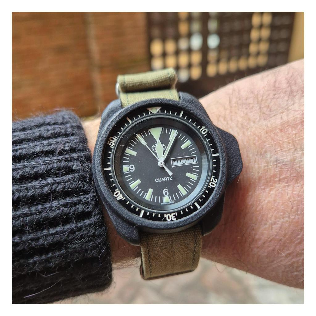 A very well-crafted strap with durable cotton, a little on the thick side. I struggled to get it through the watch's lugs and had to use pliers. Overall, I'm very happy with it.